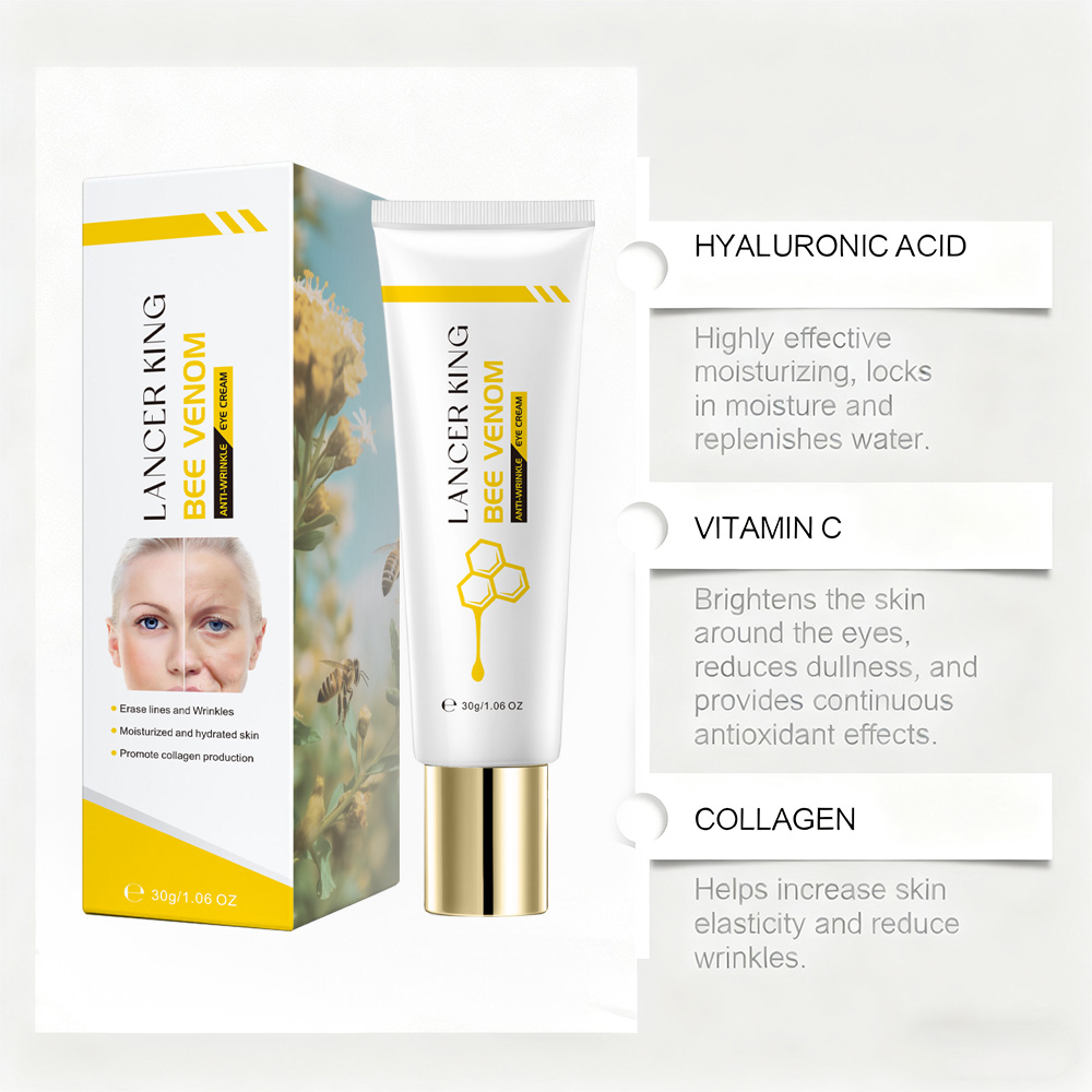 LANCER KING蜂素抗皱眼霜含有丰富的保湿因子,有极佳的保湿效果,能锁住眼周水分并补充水分。